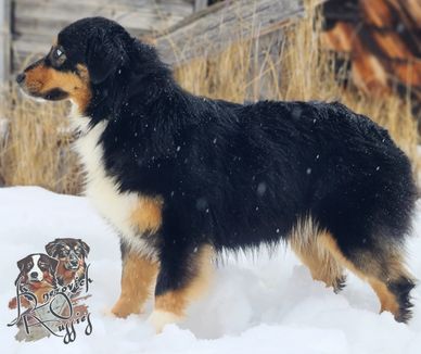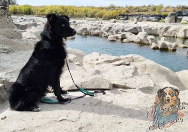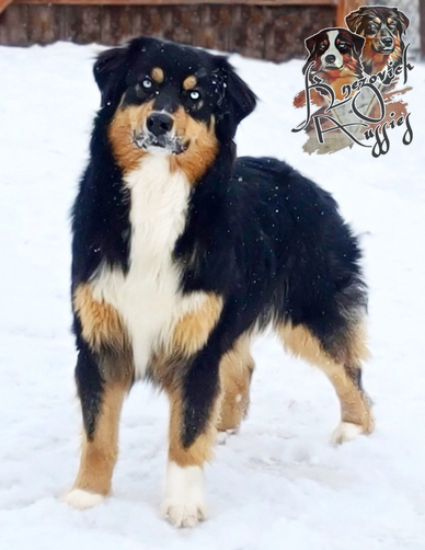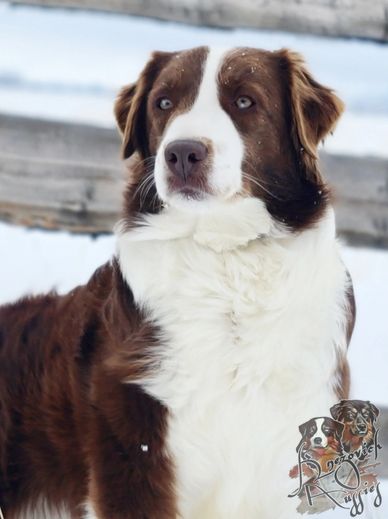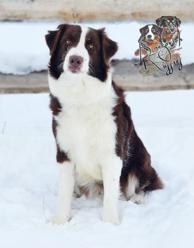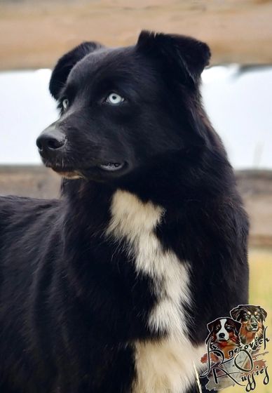 Ouija is a minimal white black bi. She has two beautiful blue eyes, with a neat brown stripe in her right eye. Ouija is a very smart girl and learns quickly! She is one of the more energetic of our pack. Has an incredible off switch, and is content laying at her person's feet.